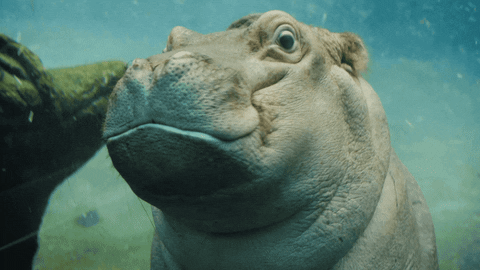cute, lol, fun, animals, smile, swimming, underwater, woah, hippo, baby animals, close up, avoiding eye contact