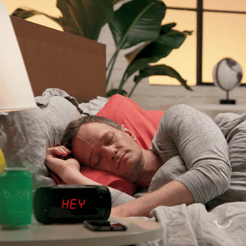 neil patrick harris, wake up, yawn, bubly, bubly water, alarm clock, hullo