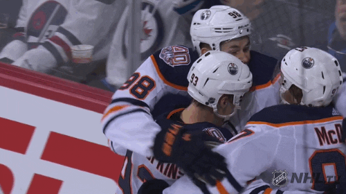 happy, sports, excited, celebration, hockey, celebrate, hug, nhl, ice hockey, 18 19 season, oilers, edmonton oilers, hockey hug, goal hug, jesse puljujarvi, puljujarvi